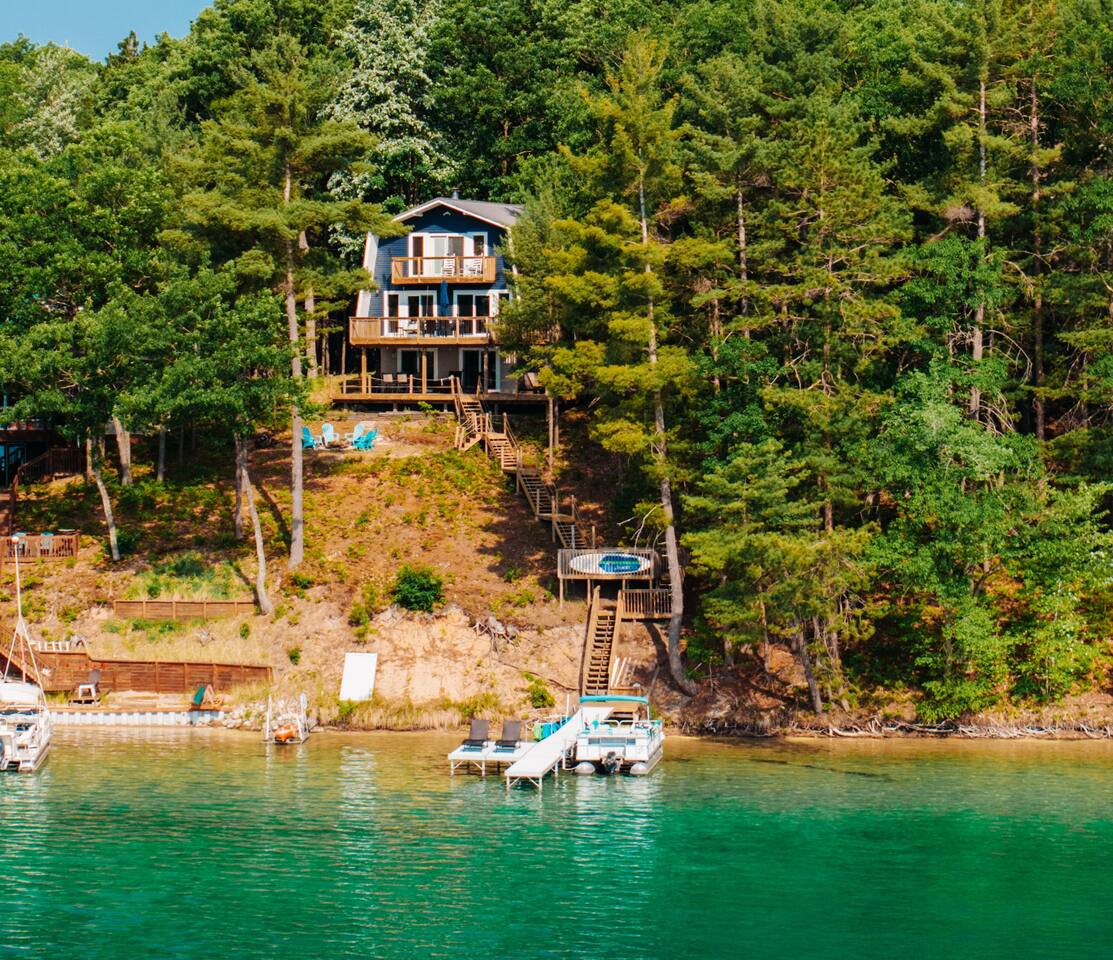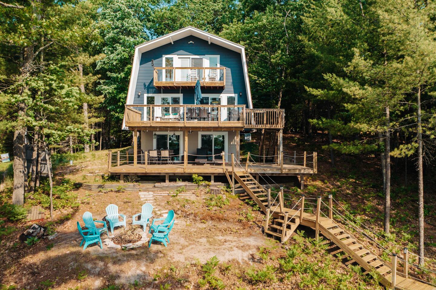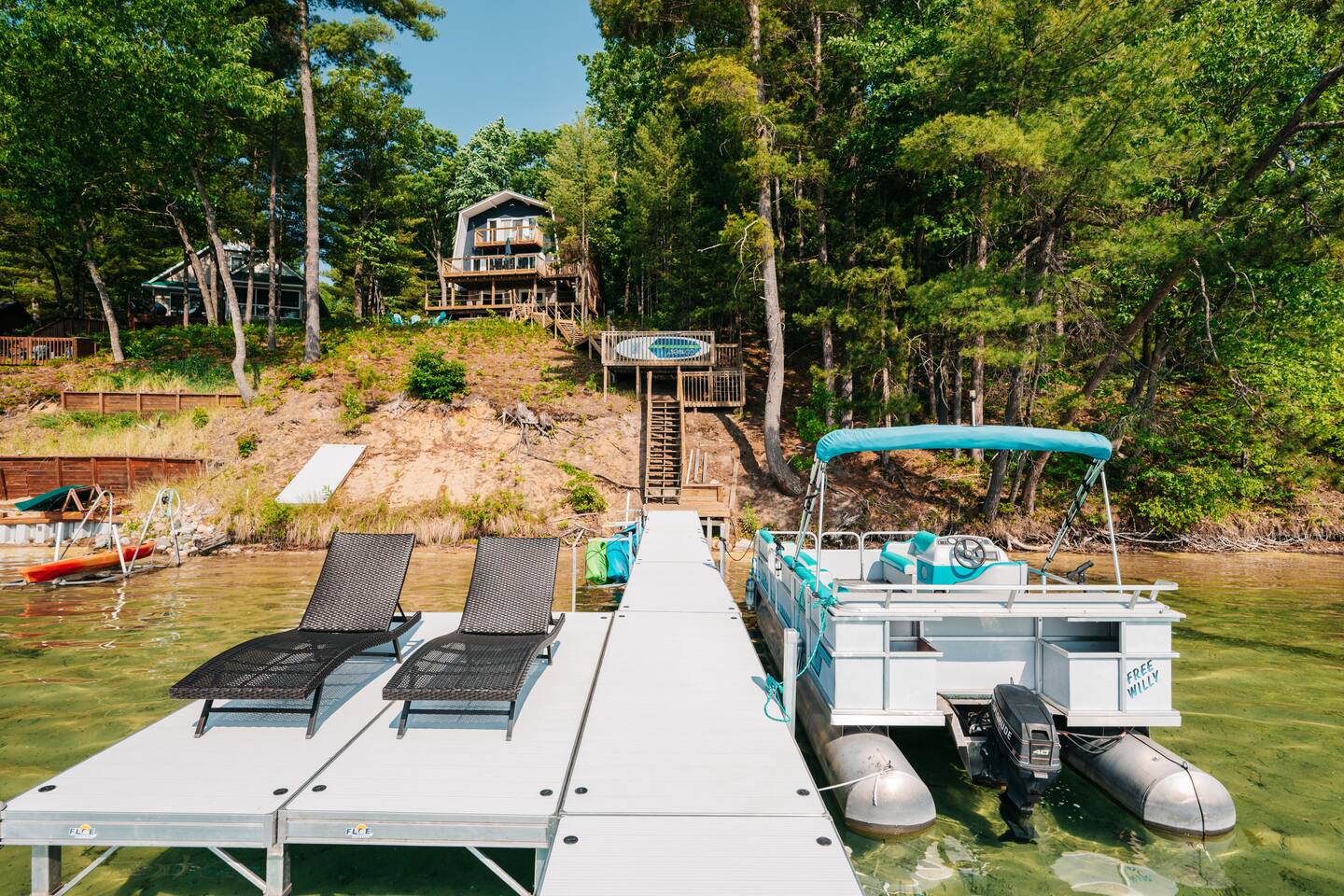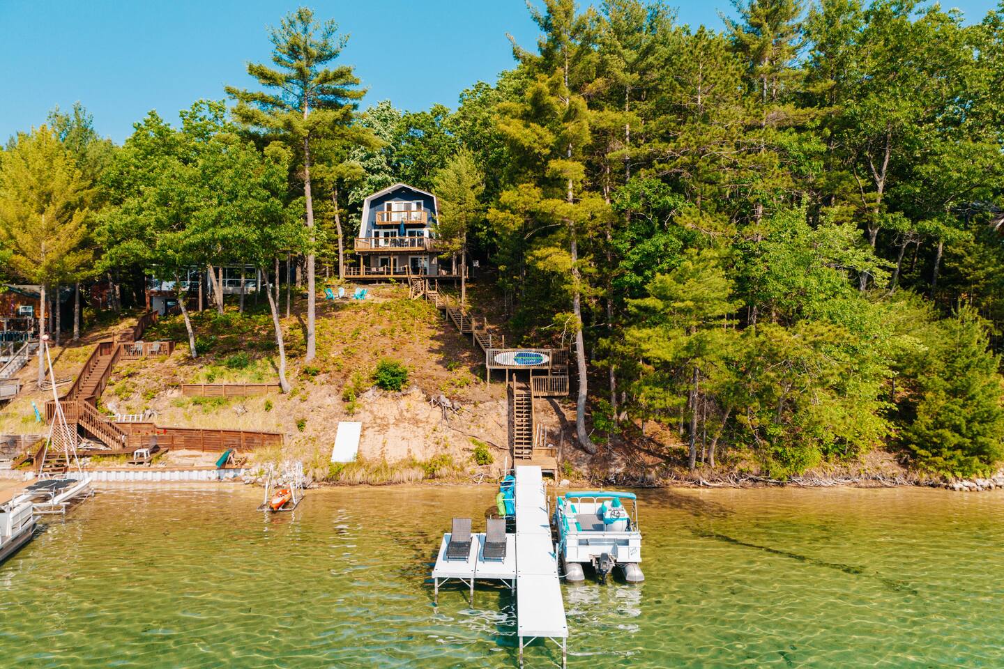 🌊 2 ladders on dock for easy lake access 🔥7 person Jacuzzi Hot Tub 🍳Full Kitchen and 4 Burner Gas Grill 🏍️ Surrounded by ORV/Snowmobiling trails 🌞 Amazing views! 2 walkout decks and a walkout balcony from the master bedroom 🚗Only 15 minutes to downtown Kalkaska and Grayling. Less than an hour to Traverse City, Gaylord, Charlevoix, Petoskey, Cadillac, Belleaire and Boyne. 📺 2 Roku TVs with YouTubeTV. Step inside and be greeted by an open and airy living area, featuring comfortable seating and large windows that showcase stunning lake views. The cozy fireplace invites you to curl up with a book or watch one of your favorite shows. Adjacent to the living area is a fully equipped kitchen to prepare delicious home-cooked meals. As you venture outside, you'll be captivated by the natural beauty that surrounds you. The expansive backyard leads directly down to the pristine lake, where endless water activities await. Dive into the clear waters for a refreshing swim, cast your fishing line and reel in the catch of the day, or hop aboard a paddle board or kayak or rent our pontoon for use during your stay. But the excitement doesn't stop there! For adventure enthusiasts, nearby ORV/snowmobiling trails offer an adrenaline-pumping experience. Embark on thrilling off-road expeditions, traversing through scenic forests and challenging terrains. With its great location, stunning natural surroundings, and a multitude of activities for every member of the family, conveniently located just 15 minutes away from the charming downtown areas of Grayling and Kalkaska, our lake house retreat is the ultimate Northern Michigan escape. Book now for an unforgettable family getaway! *Please note: Winter in Northern Michigan brings significant snowfall, and the driveway is located on an incline. To help ensure a safe and comfortable stay, we recommend that winter guests have an AWD or 4WD vehicle and feel confident driving in snowy conditions. Additionally, due to winter weather and snow accumulation, the backyard and the stairs leading to the lake are not maintained during the winter months.*