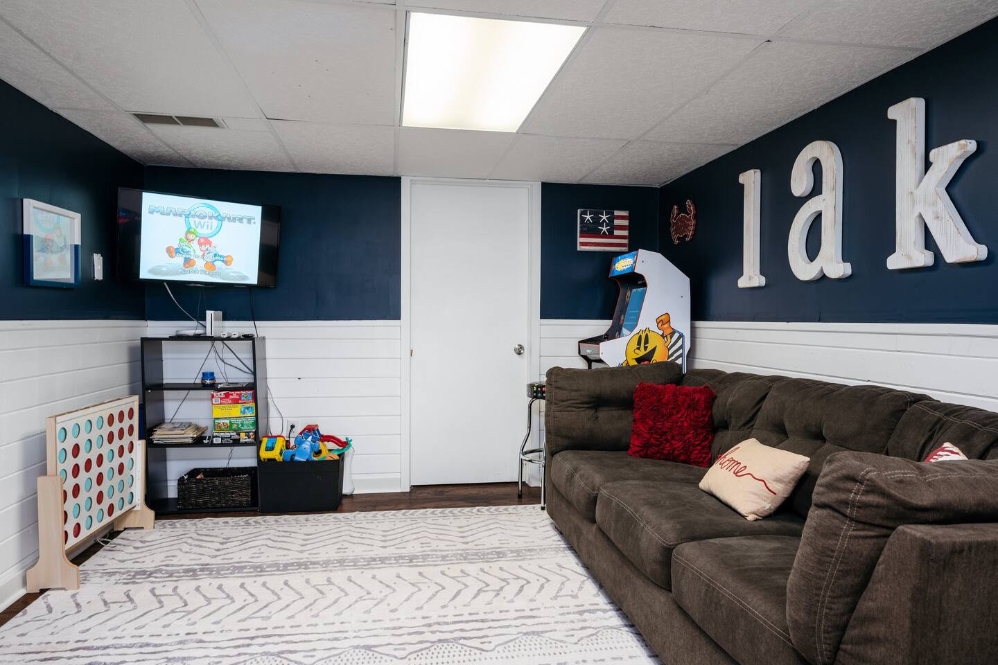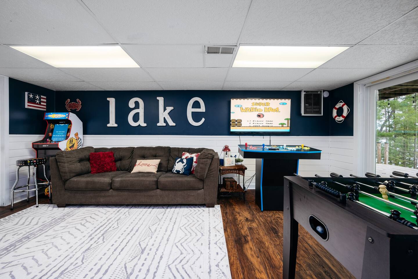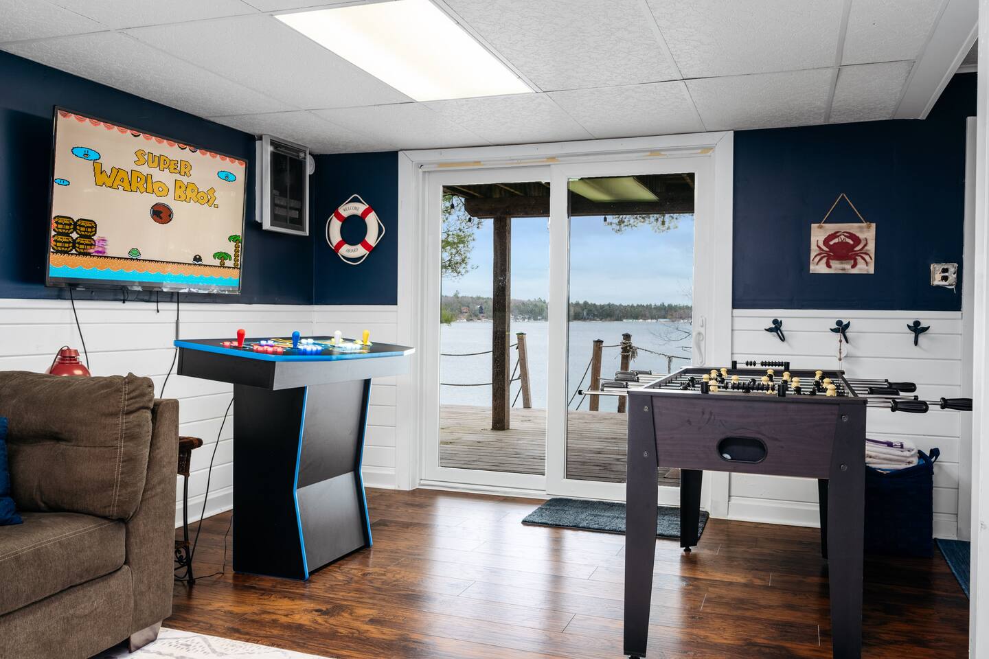 🕹Game room w/ 4 Person Arcade Machine with over 5,000 Arcade Games, Pac Man & Nintendo WII 🎱Game room w/ Pool table and Darts 🚤 22 ft Sylvan Pontoon (seats up to 15 people) is available for rent $250/day or $1250/week. The pontoon must be rented for the entire duration of your stay (available end of May-Mid September) 🛶 3 Kayaks, 1 paddleboard included (available end of May-Mid September) 🏖 Public beach access (opposite side of lake. Can access via car, boat or kayak)